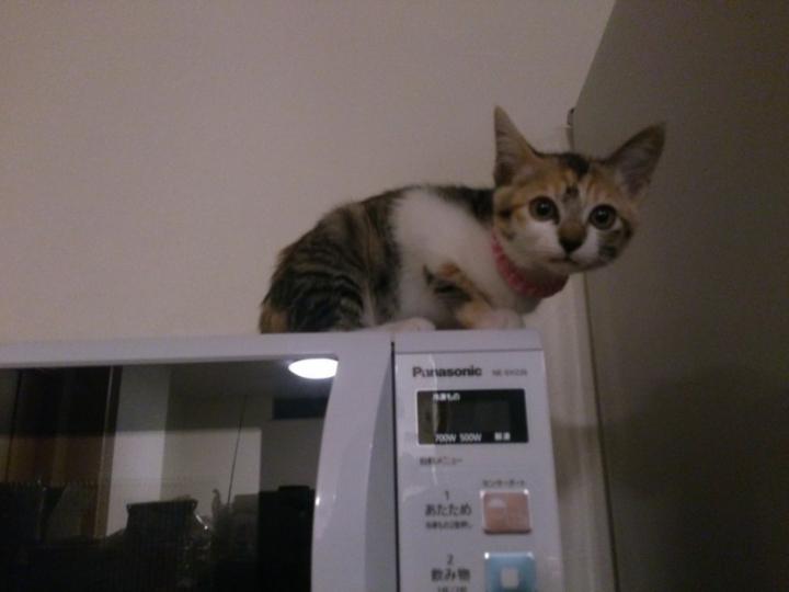 今日はおとなしく電子レンジの上で(^ω^)