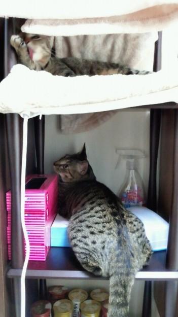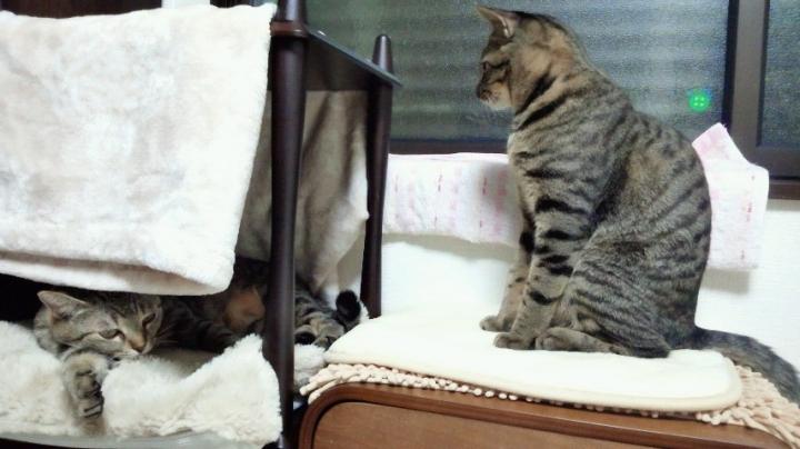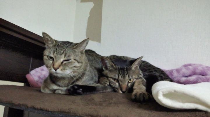 2匹とも旦那と目が合うとシャーって頑張ってます。