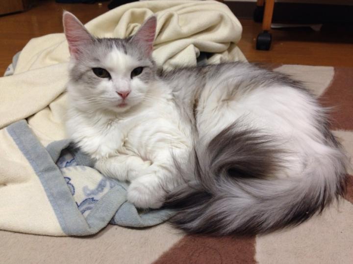 でもリビングで寛いでいると背中側で毛づくろいしてたりと、ニクい距離の取り方をします(*´д`*)