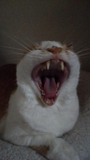 猫のあくびって瞬間で見ると強烈ですね(笑)