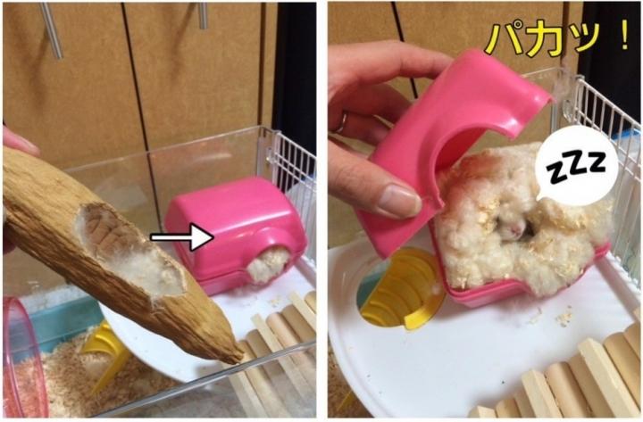 綿もホリホリして、自分の部屋に運んでいるようです。