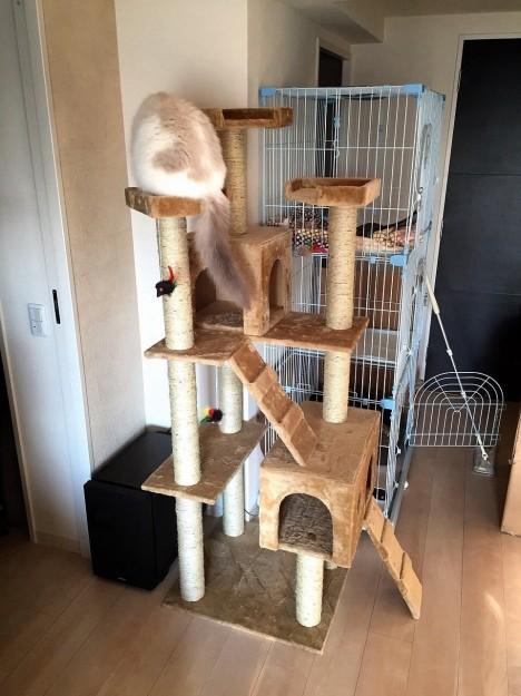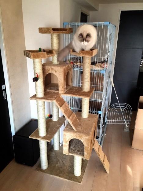 一歳の誕生日プレゼントに、キャットタワーをもらって、
