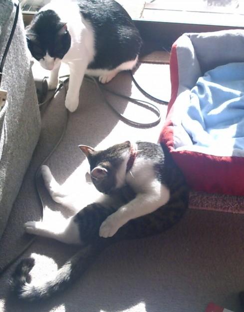 今日は寒いけど、ふたりとも、そこに居てたら、暖かくてええやろ。