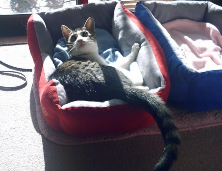 でも、朝からいいお天気なので、お母ちゃんのお部屋のサッシ戸のところは、お日様ポカポカです。