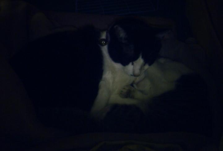 「今日、お日ちゃま照らへんけど、ここに居てたら暖かいニャ、ハチお兄ちゃん。」