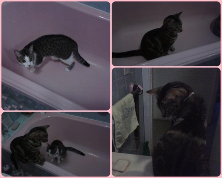 洗面台に立つと 洗面台の上に乗って座って待ちます。