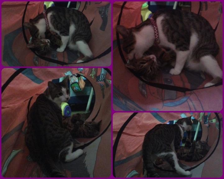 ににゃんとも 子供たちよりも先に中に入って遊び始めます。