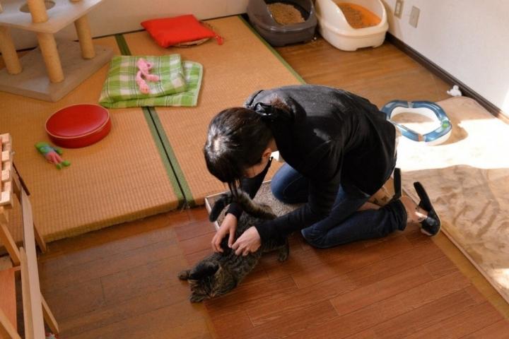 チエ様の毛づくろいをさせてもらう人間の図です。