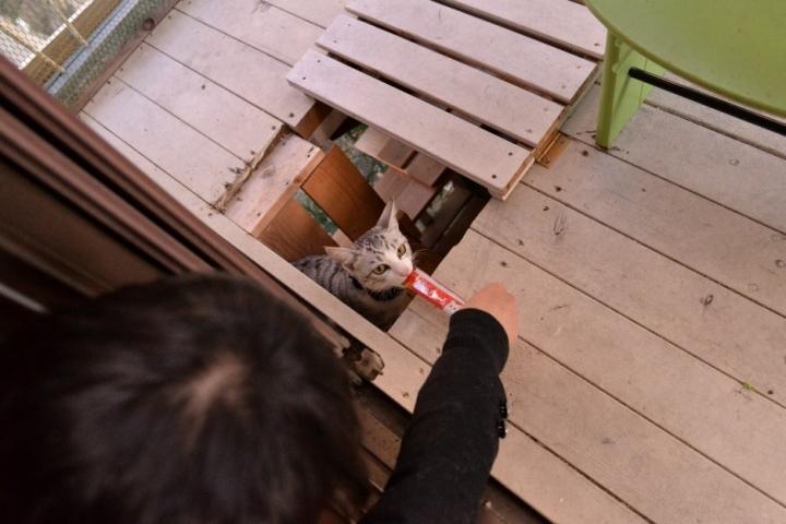 最初は逃げるナナちゃんにチュールで、懐柔作戦。