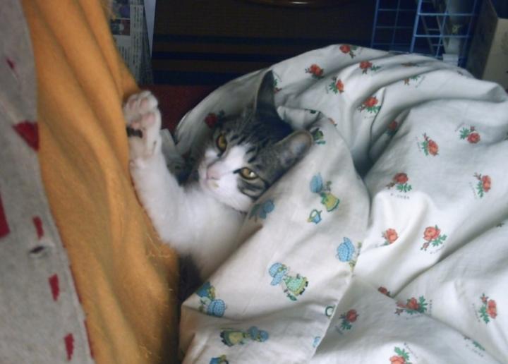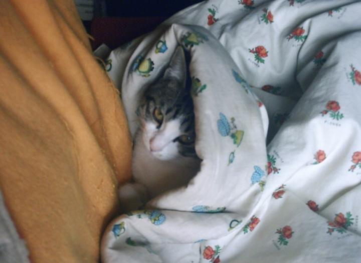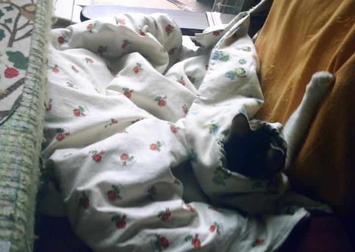 ベッドに深ぁ~くもぐりこんで、出てきません。