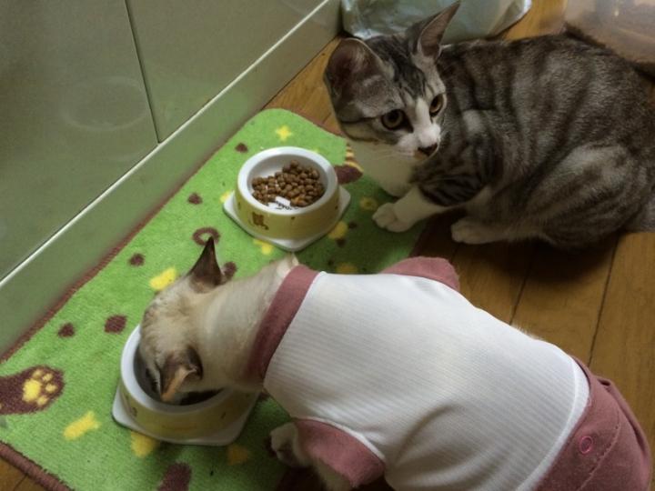 少しぎこちないけど、一緒にご飯を食べる空と花(^o^)