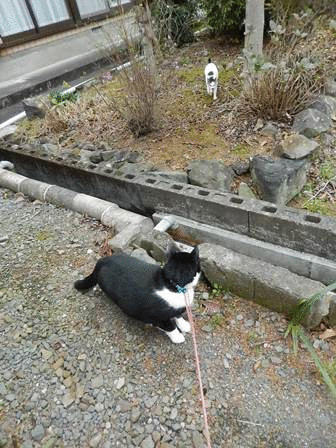 なるしゃんが楽しく?お散歩していたら、白猫が・・・・。