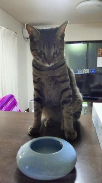などなど…「結局、好みを把握するまで色々試せって事だな!?」と、いう事で、プラスチックのボールだけじゃなくて、陶器の丼にしたり、設置箇所増やしたり、ぬるくしてみたり、水を美味しくする効果のセラミックボトルに一旦入れてみたり、運動させてのどを渇かせてみたり、水飲み場にフェロモンスプレー撒いてみたり、取り敢えず「飲む」習慣をつけようと猫ミルク飲ませたり…