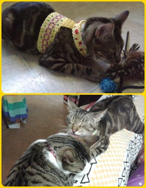 そして足元には 咥えて持ってきたじゃらし紐が。(写真2参照)