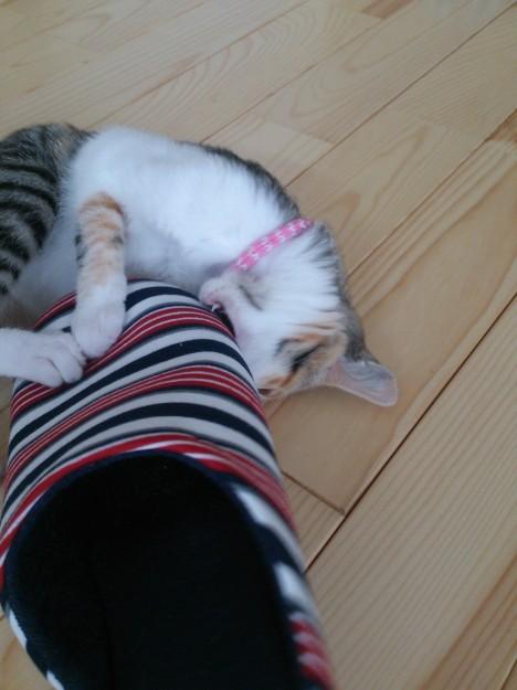 ソラさんはスリッパを見るなり噛んでます(^-^;