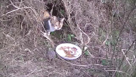 その河原に捨てられた、ニャンコ達へ長年に渡り「餌やり」をしている老夫婦がいるのです。