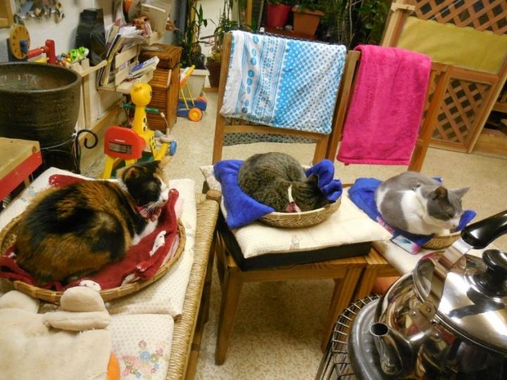 新しくストーブのまわりベット増やしたら