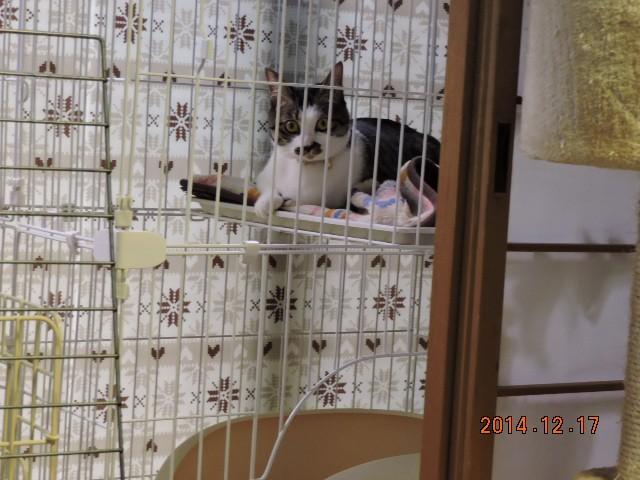 お猫たちは寒いのに運動会を繰り広げ疲れたのかなぜかそらはななのケージに入って休んでいました。