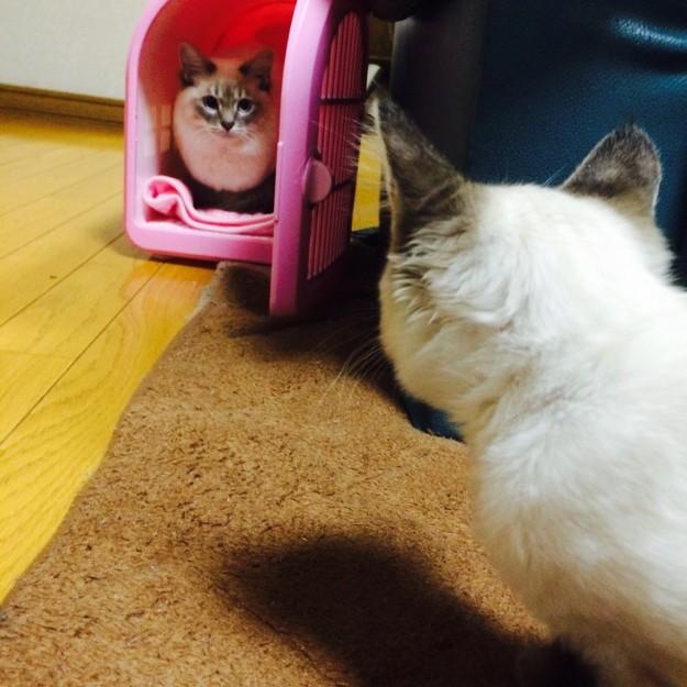 15日(月) 2匹で健康診断! お医者さんで痛い?思いをしたのか意気投合して2匹の距離が微妙に縮まりヴ~~!シャー!は急激に減りました。(^_^;)