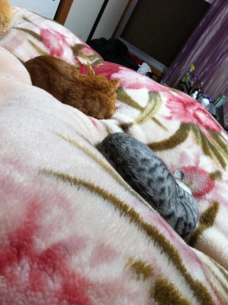 たくさん遊んだ後は、うとうとしてる私の上でドーナツになりながら、