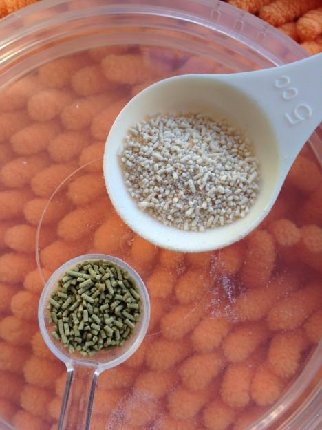 粒子は 少し細かいので エサと一緒に食べれるぐらい。