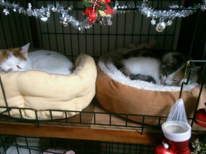 奥にはドーム型ベッドを連結したので、寒くなったら入ってくれますように(*^人^*)