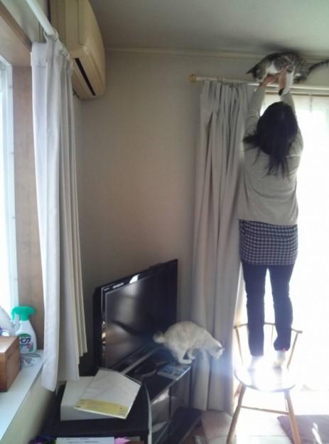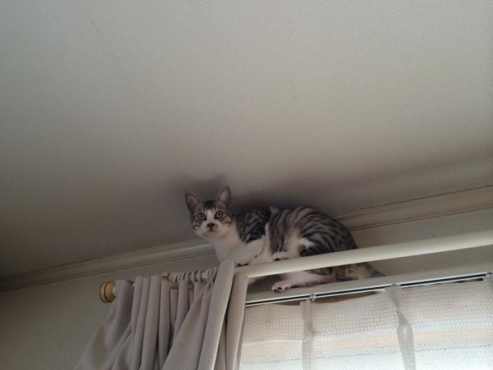 お葬式もすんで、やっとお部屋から出してもらえたから、嬉しくて高いところに登って見たけど、怖くて僕降りられなくなっちゃった。