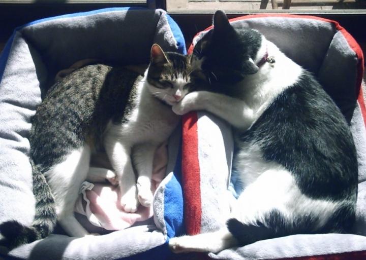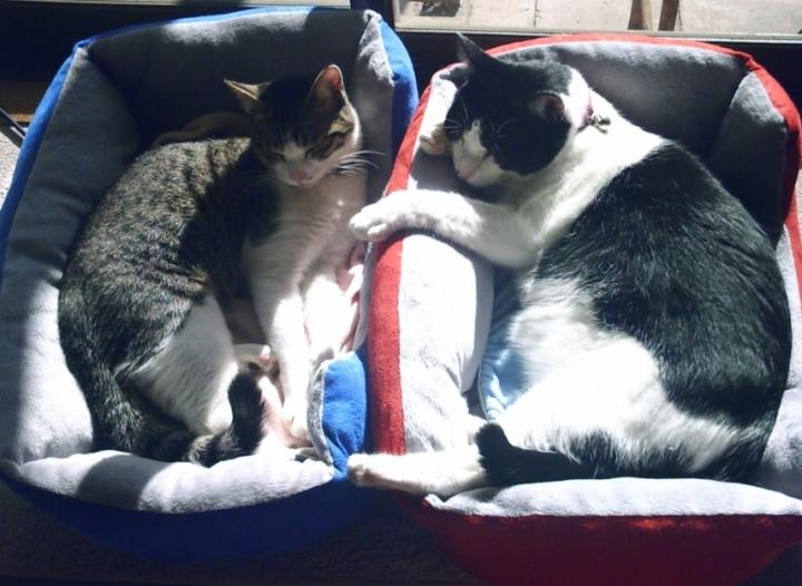 ペットベッドに入って、マッタリしているハチ君と七七保。