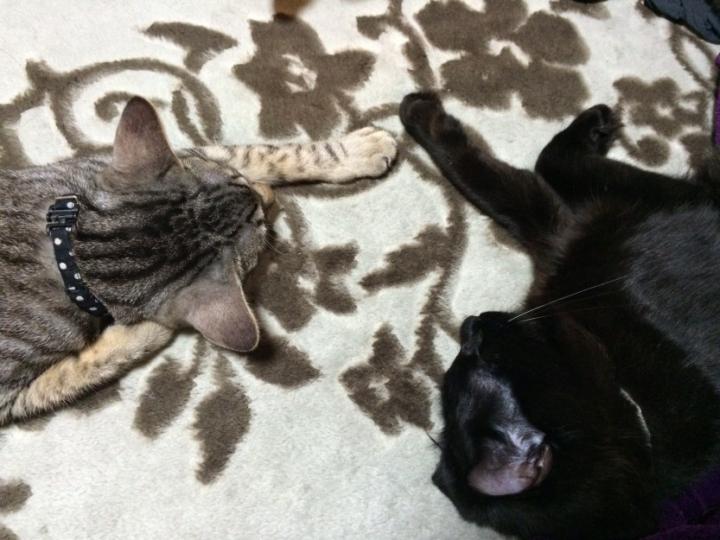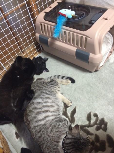 入って早速ニャーニャー鳴いてみたりキューと悲しそうにしてみたり、ついには嫌がらせのウンチなどしていましたがめげずに無視して印刷、終了後出てきたら疲れたのかカーペットの上でずっとお昼寝でした。