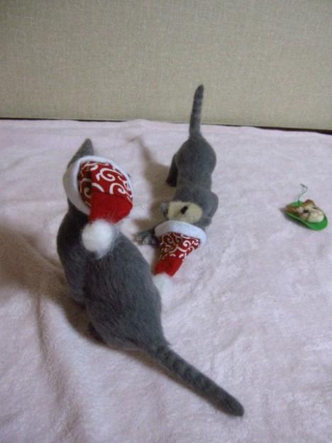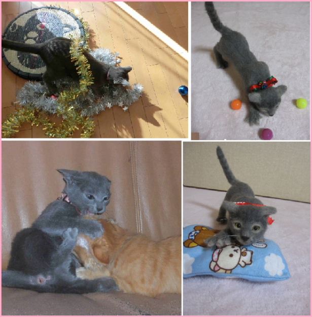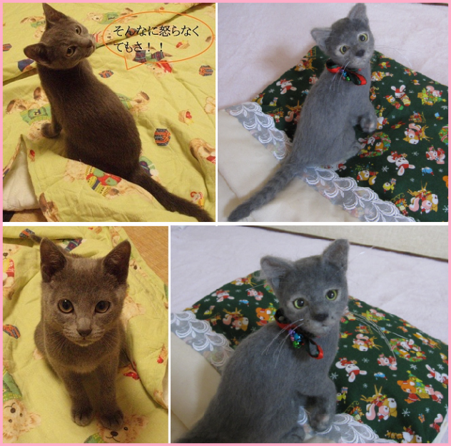 猫親戚の姉妹をモデルにおニャン形の練習をしました。