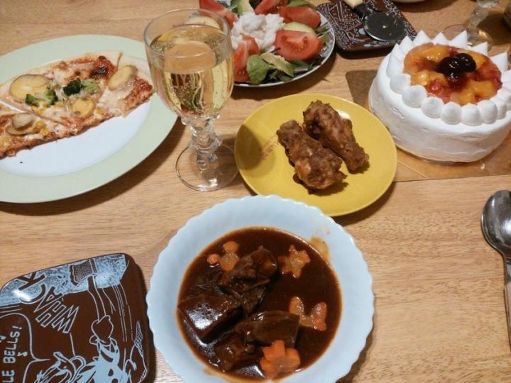 昨日は毎年恒例、宅配冷食で手抜きクリスマスディナー。
