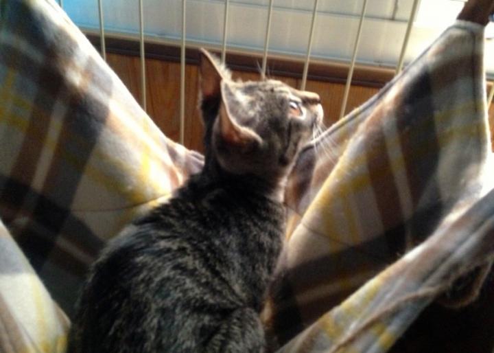 サラさんのために買ったハンモック。嫌がって結局一度も乗らずに終わったのに、ルイスが使ってくれました。