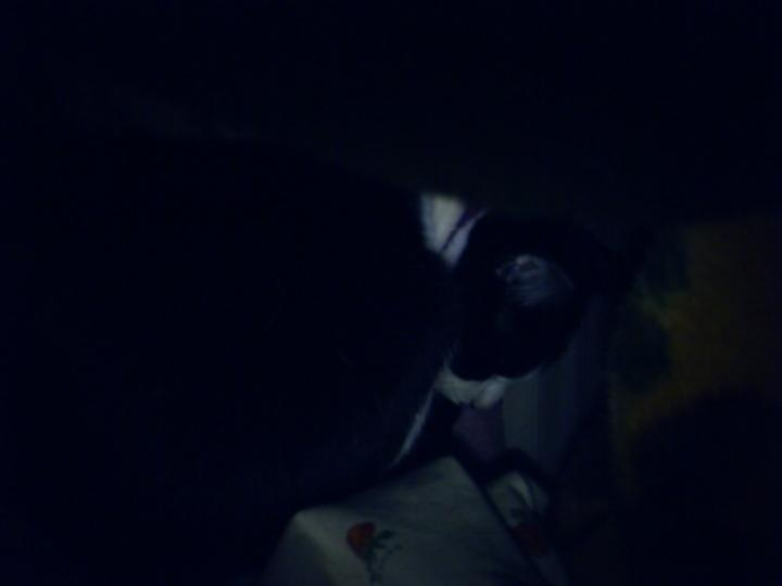 ハチ君も、お布団に入りに行くかな…と思っていたのですが、台所でご飯を食べた後、じゃまくさいのか、そのままテーブルの下、足元のヒーターとひざ掛けの間へ、入って寝てしまいました。