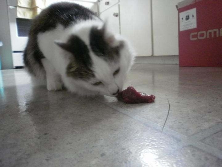 いつもお皿から肉を引きずり出して 床でかぶりついていた。