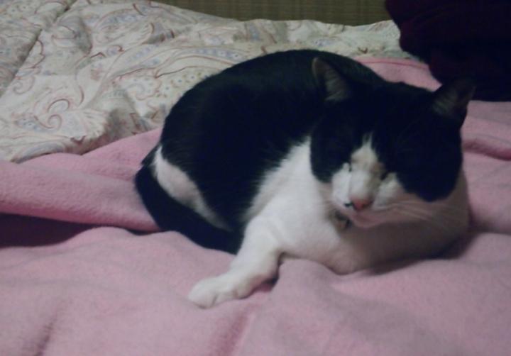 ハチ君は、お母ちゃんのベッドの上で、ひとりマッタリ。