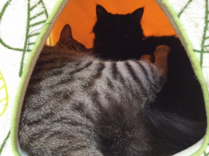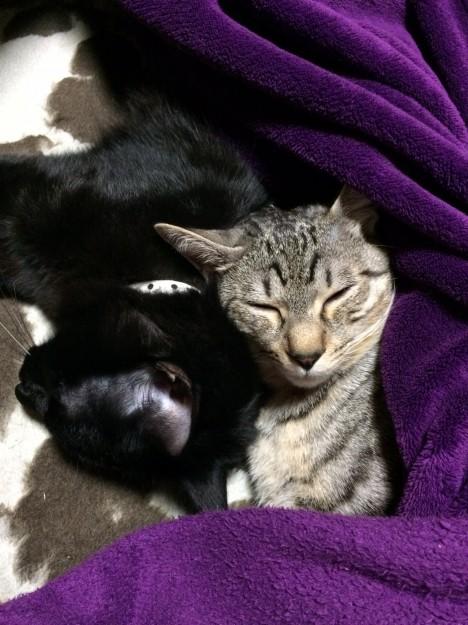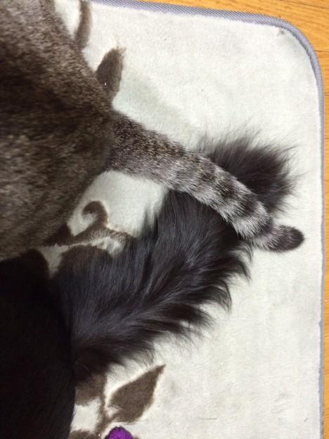 猫のおせちはないけれど、仲良くしっぽを重ねてごはんを食べました。