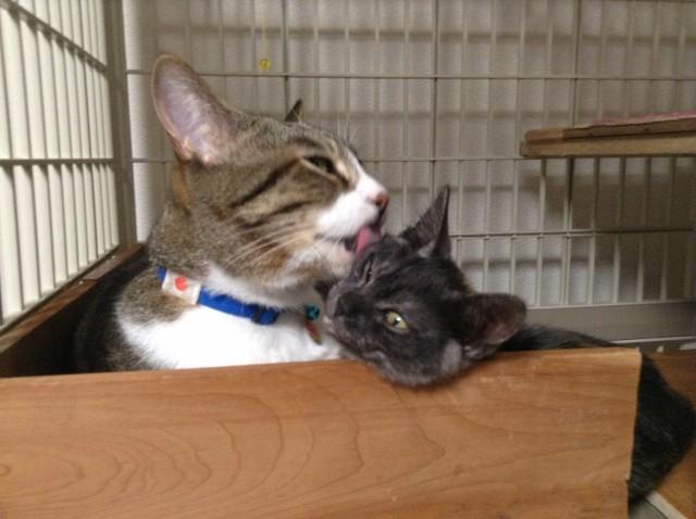 キャンディは生後4週間で、ロールは生後7週間で保護しました。