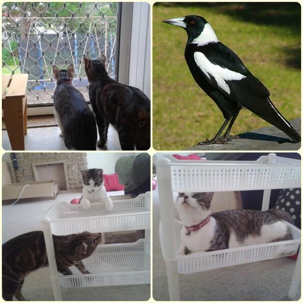 昨日は トランポリンにMagpie(マグパイ)という カラスのような鳥が止まり、