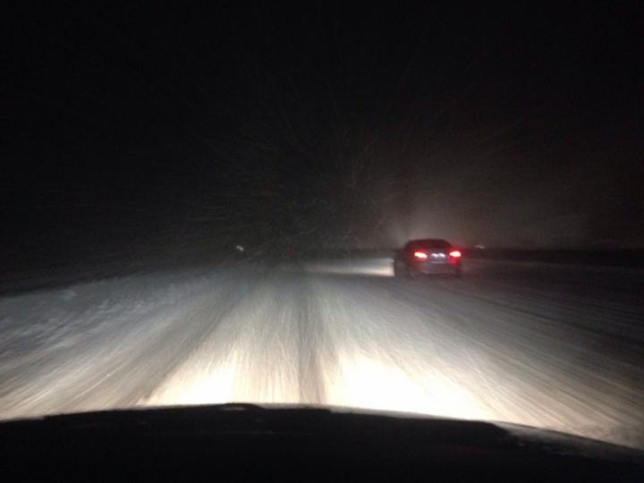高速道路で20kmで淡々と雪が降ってないところまで走りました笑