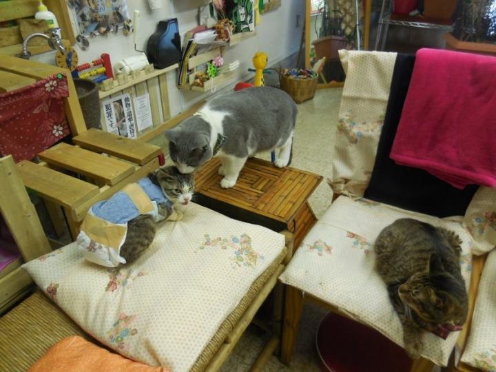 朝からニャンズはご機嫌で店でノビノビ遊んでいました