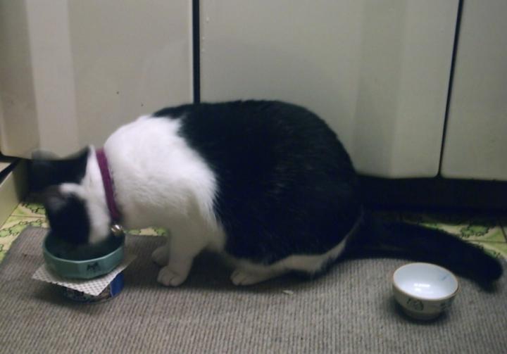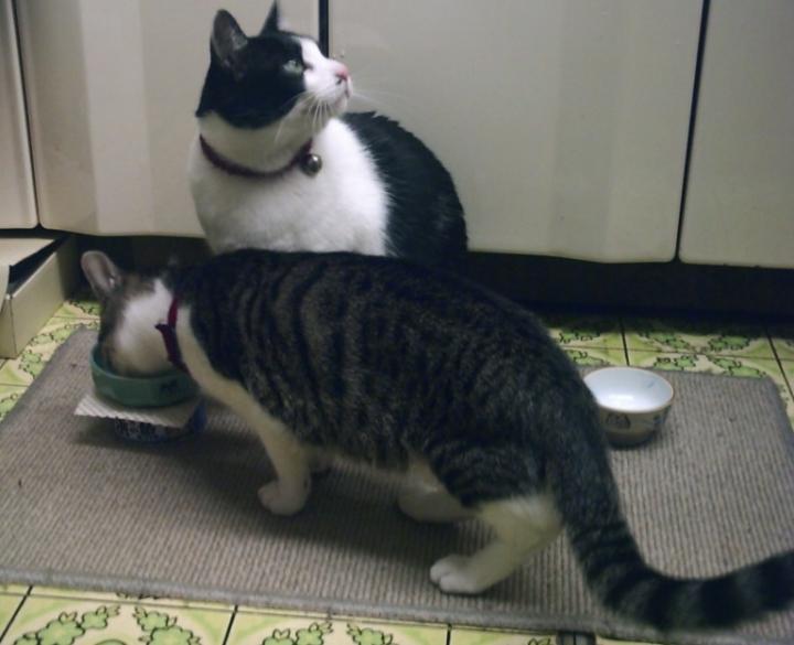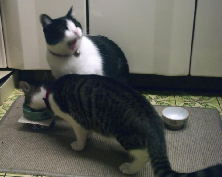 ハチ君、七七保が残り食べに来てるよ。ええの?