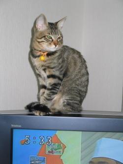 この子が乗ったり、はたまたテレビの上で、お昼寝したりしています。