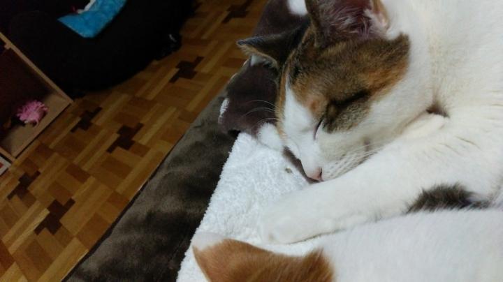 しあわせそうに、寝ているにゃん(=^ェ^=)です。