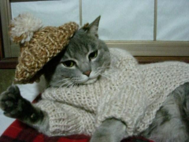 グレーと茶の中間色で尻尾が妙に短く、首が短く、頭でっかち。