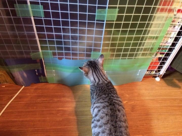 今は私が用意した簡易ケージに入ってもらっていて、緊張してトイレにずっと座っています。