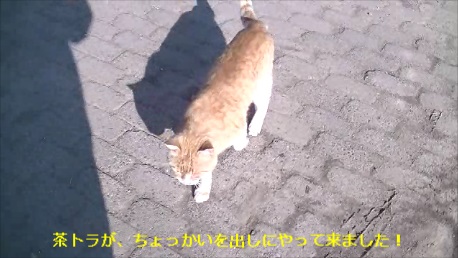 それを見かねたのか、茶トラがブッチ君めがけて近づいて来ました。