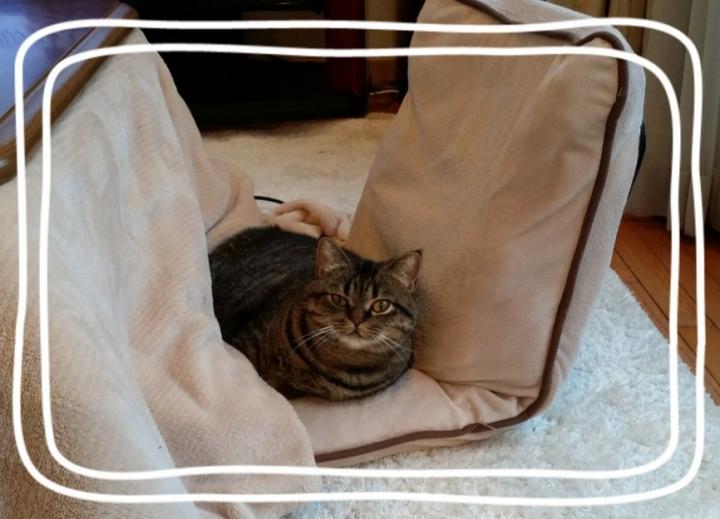 ルナこさん、お昼はこたつの座椅子、お気に入りのようです