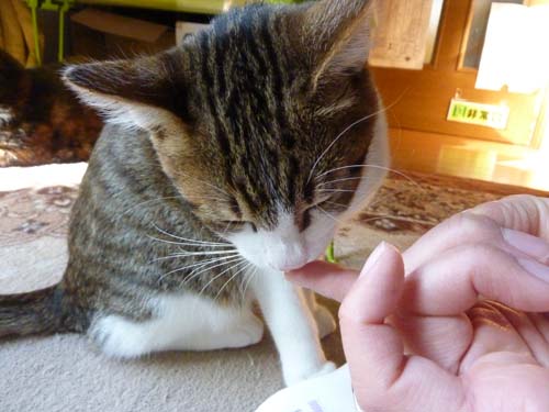 匂いを嗅いでいるので、チョンと口につけてみたら舐めた。