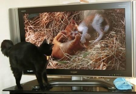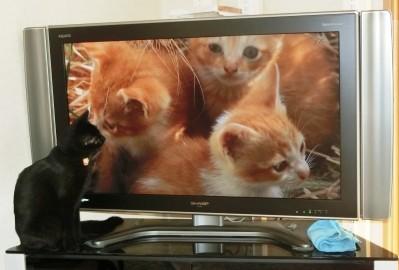 テレビから「みゃ~、みゃ~」と仔猫の声。