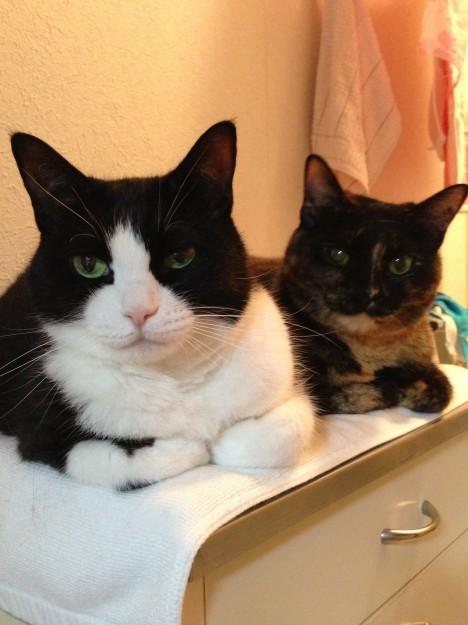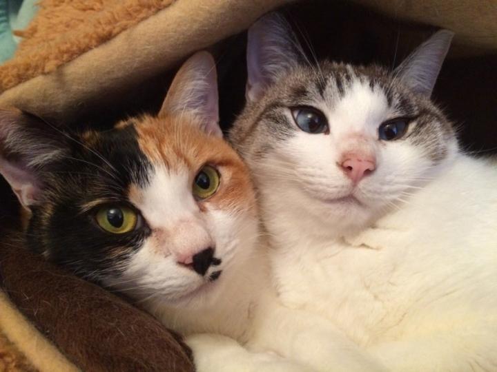 一番下の写真は、手前が先住さんで奥のサビちゃんがお姉ちゃん。
